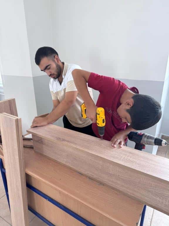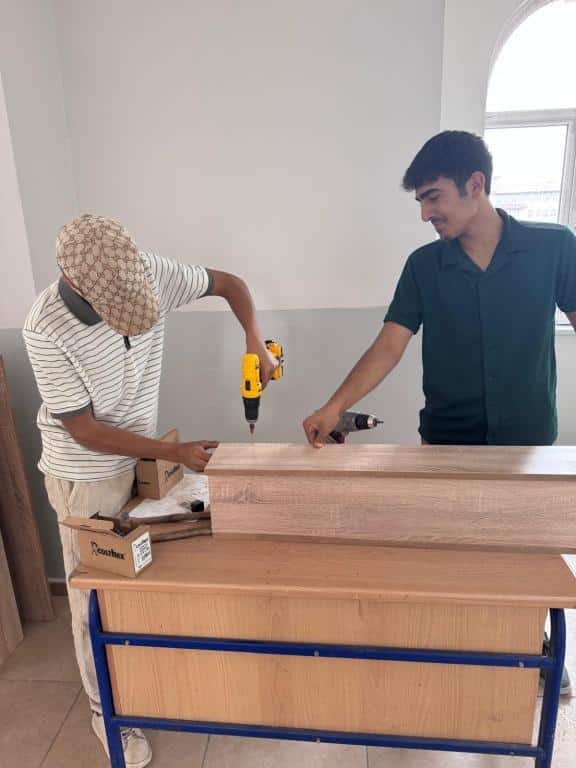 Patnos Mesleki ve Teknik Anadolu Lisesi, Mobilya ve İç Mekan Tasarımı Bölümü öğrencileri ve öğretmenleriyle, Patnos 15 Temmuz Şehitleri Anadolu Lisesi'nin sınıfları için mobilya imalatı gerçekleştirdi.